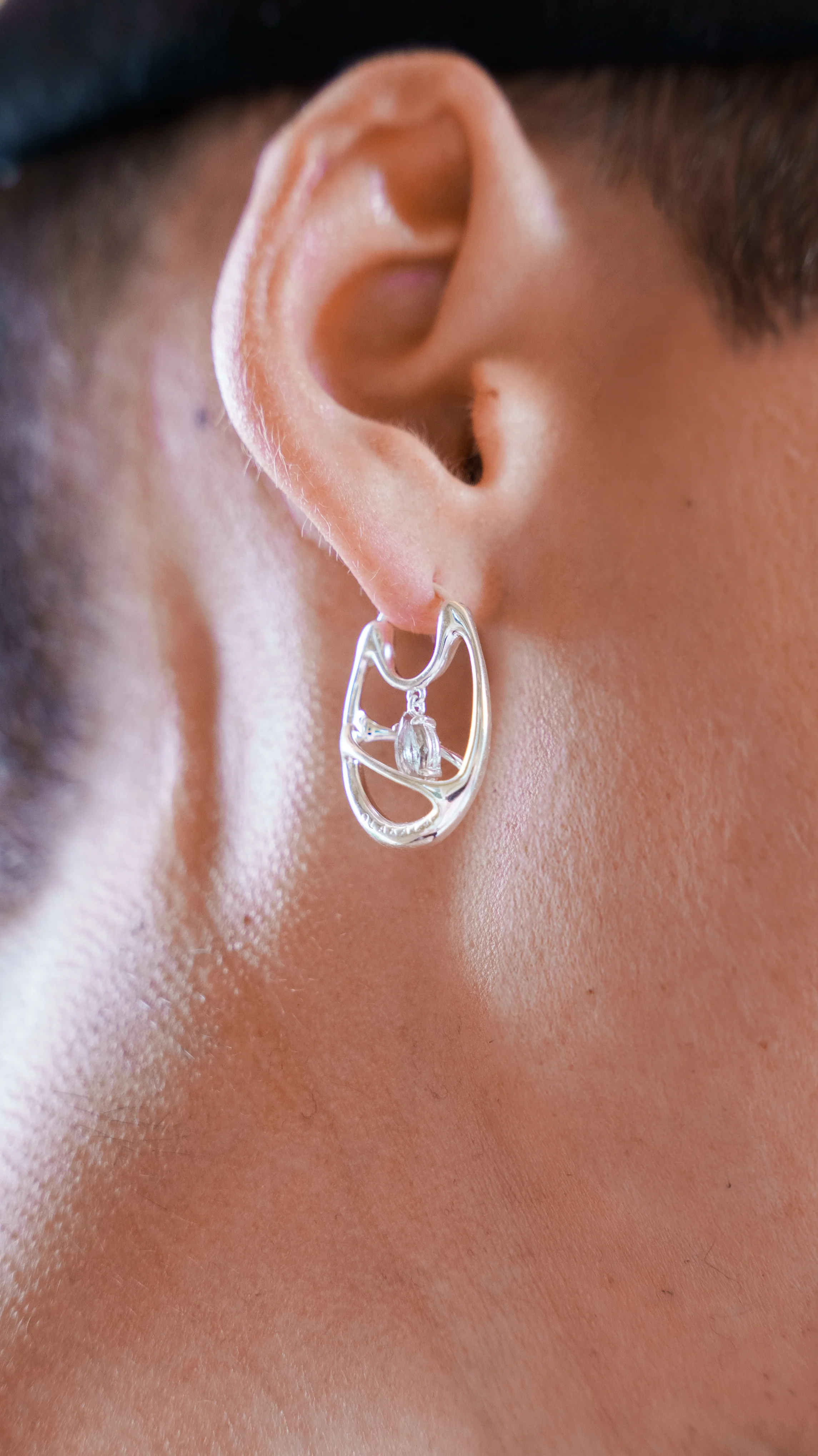 Ein eingraviertes OLAKALA Logo verleiht dem Ohrring eine präzise, hochwertige Signatur.